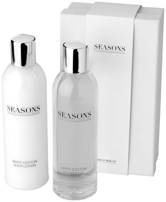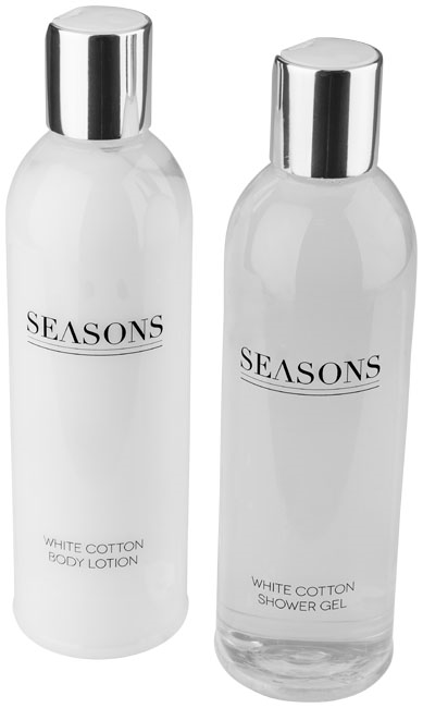 This giftset contains 250ml of shower gel and 250ml of body lotion. Both in a soft white cotton fragrance.