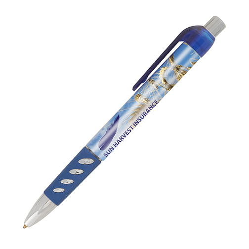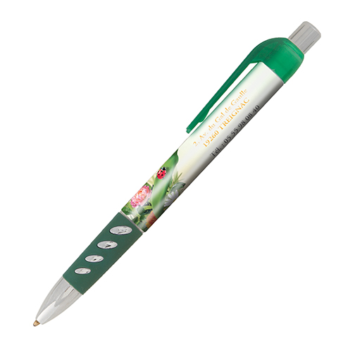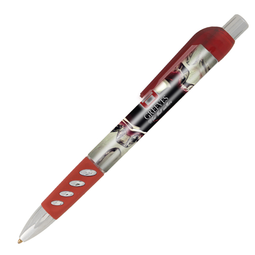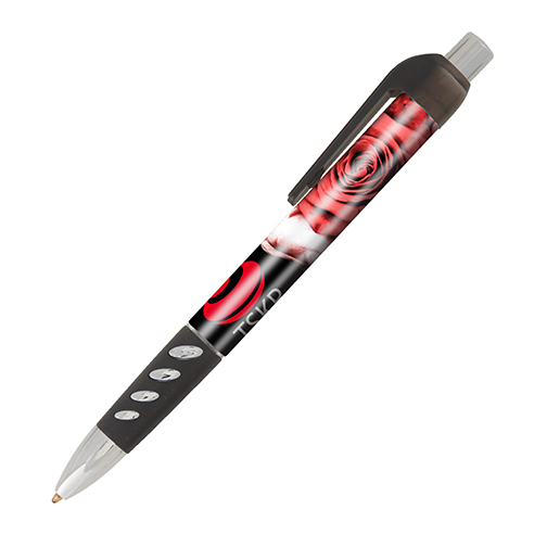 The Bacall ballpen features a unique vented rubber grip, chrome accents and a transparent clip. This click-action ballpen is available in 4 classic colours. Digitally printed, full-colour to photo-quality 360° around the barrel. Please note that the clip is moveable, allowing for a true 360º branding area.