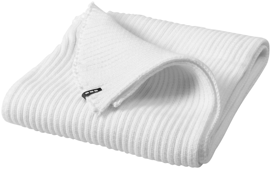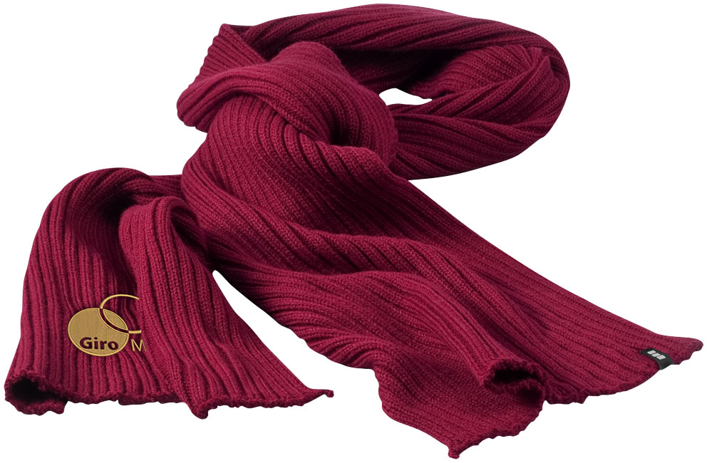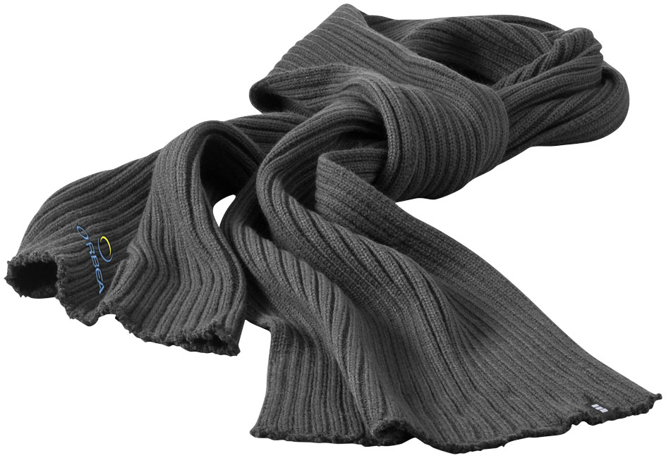 Broach scarf. Branded loop label. 2×2 100% Acrylic rib knit.
