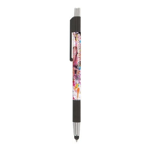 A versatile stylus pen with full colour 360° digital branding and chrome accents, the De Niro Stylus has a soft silicone tip suitable for use with any smartphone or tablet. Please note that the clip is moveable, allowing for a true 360º branding area.