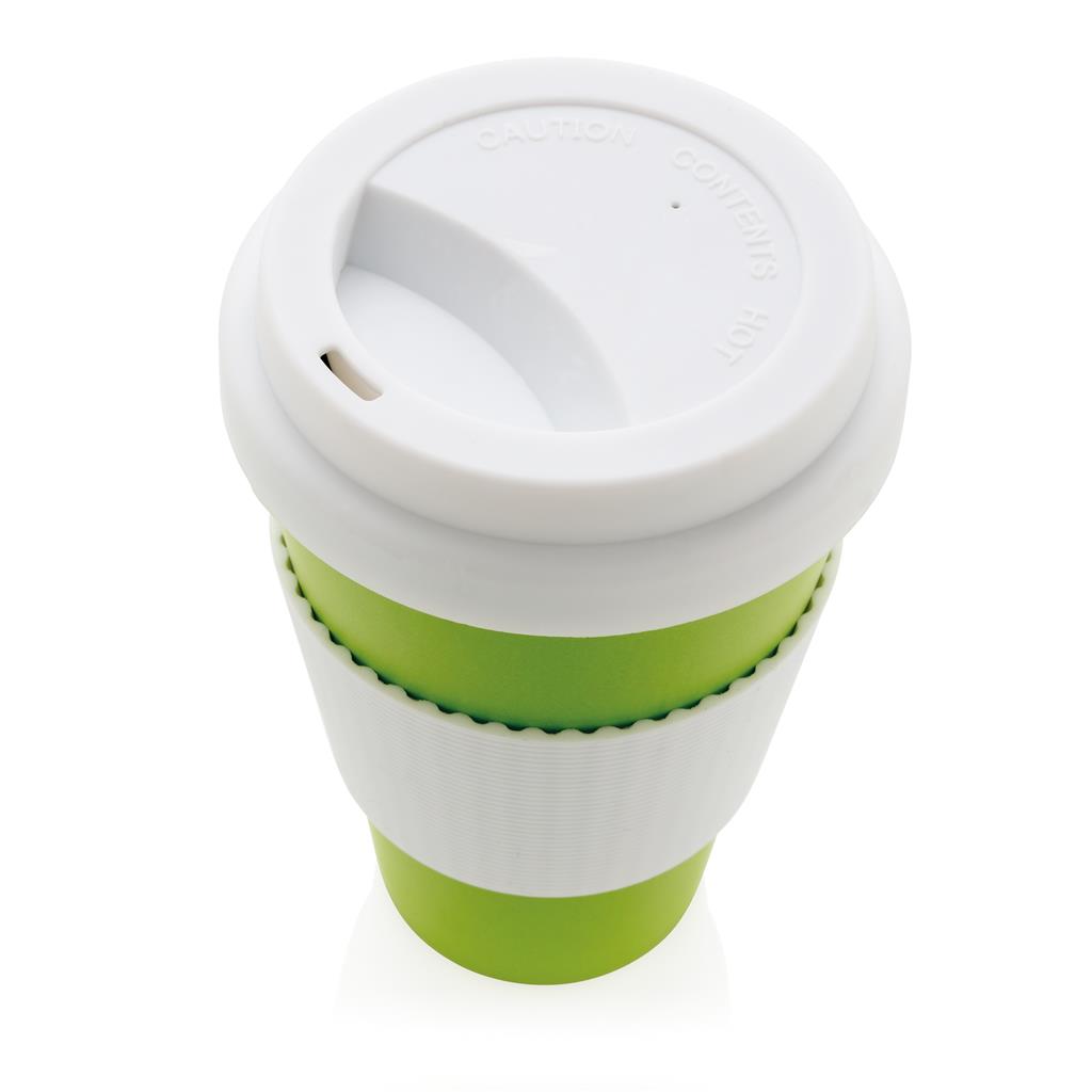 With silicon lid and grip.