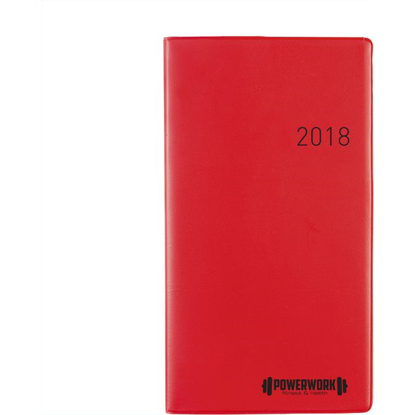 Pocket diary, in four languages: NL, EN, F and D. Finished with a plastic cover with 2 pockets. 64 pages printed in 2 colours on 70 g white, wood free paper, one week per page, address book and bookmark.