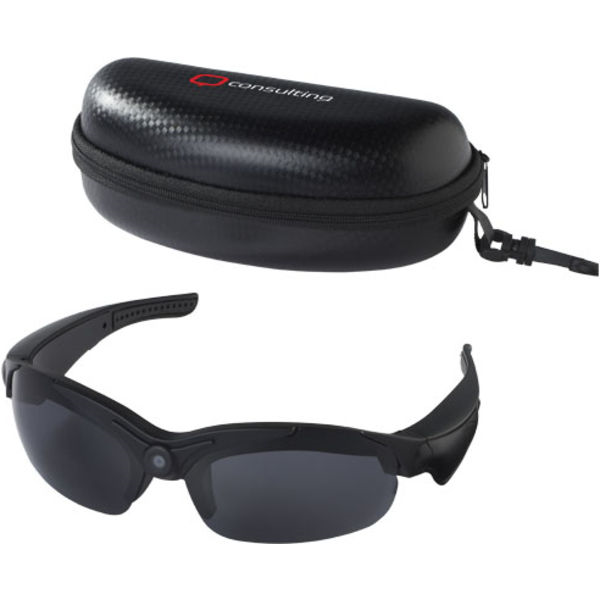 The sunglasses also feature a microphone to record sound. The sunglasses are compatible with any micro SD card up to 64GB. Micro USB charging cable and protection pouch included. The lens are UV400 for ultimate protection.