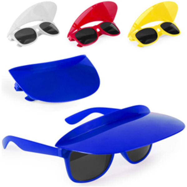 Plastic sunglasses with UV400 protection and foldable sun visor. Large print area.