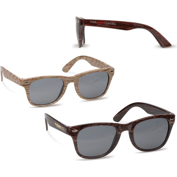 Trendy sunglasses with a wooden look. A fashionable gift to promote your brand name.